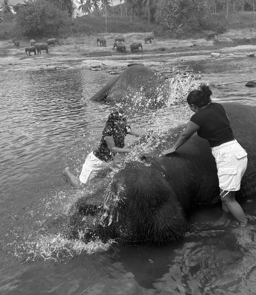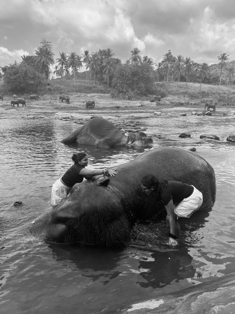 bathed some elephants and got bathed back, & yes my sister and I are wearing the same thing. we’re at that stage of our relationship okay… 🙃